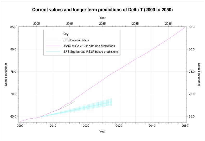 图片说明:2000-2050世界时与力学时之差