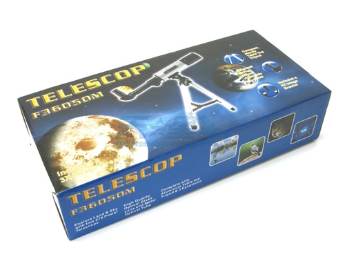 ¤型号:F36050M ¤通光口径:50mm(2.4″) ¤焦距:360mm.f/7 ¤斜镜:90° ¤经纬台及铝脚架 ¤三脚架最高度:34cm ¤标准0.965英寸附件包含: ¤目镜:SR4mm,H20mm¤3倍巴罗镜 ¤此款最大放大倍数:90倍( ...
