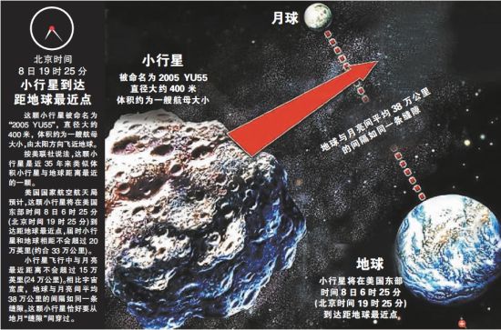 直径400米小行星将与地球擦肩而过 小行星明天(11月8日)“擦肩”地球据英国媒体近日报道,一颗航空母舰大小的小行星将在11月8日与地球擦肩而过,届时它离地球的距离将比月亮还要近,属35年来首次。科学家说, ...
