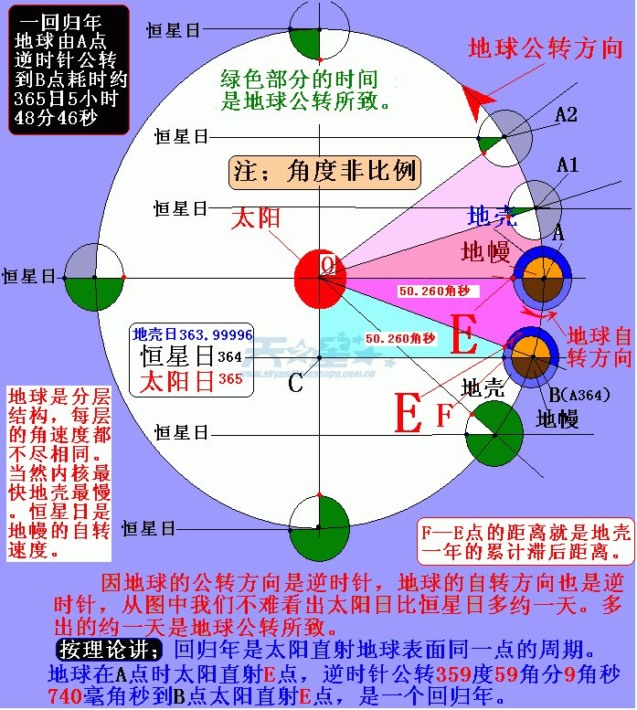 讨论;回归年是太阳直射地球表面同一点的时间间隔? 如图;按理论分析,“回归年”应该是太阳直射地球表面同一点的时间间隔。