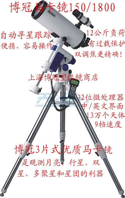 博冠马卡镜150/1800是观测月亮、行星、双星、多聚星和星团的利器。