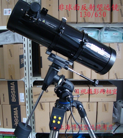 博冠非球面反射望远镜130/650,无色差、消球差,可以接单反照相机进行天体摄影。无论是目视观测还是摄影,比牛顿式球面反射镜更清晰。镜筒可接赤道仪EM8、EM10、EM45、EM100。